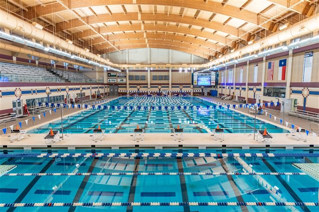 The Natatorium is in the Woodlands, just outside of Houston TX, and has easy access to Houston Intercontinental Airport. The Woodlands has a wide variety of lodging, eating and entertainment establishments. Map link for pool.