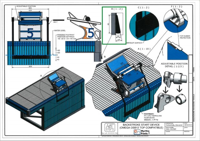 I have swum in, and officiated, meets using Omega backstroke ledges. Officials are told to set the backstroke ledge on 0 (level with the waterline), unless the swimmer asks for help to adjust it. Possible Omega ledge positions: -4cm below the waterline, -2cm below, 0, +2cm above the waterline, +4cm above.