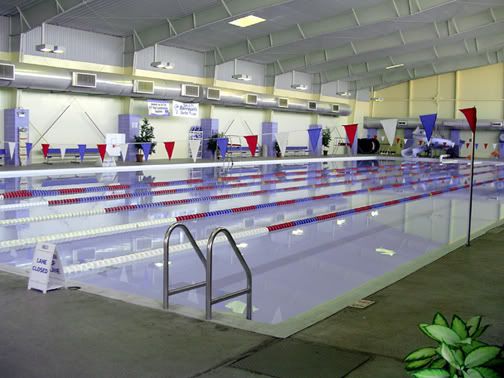Must be a really ancient pool! :D Seriously, the University of Maryland at College Park's Aquatics Center and its 50 meter x 25 yard pool, plus the 8 (I think) lane lap pool is hard to beat. On top of that, the huge gutters, underwater sound system and non-chlorine water purifcation system is only extra chocolate "icing" on a chocolate cake. The USMS '02 Colonies Zone SCY Championships were held there. For someone like me who was new to competing ... it was like driving a cool Honda S-2000. Click here to see a picture.
